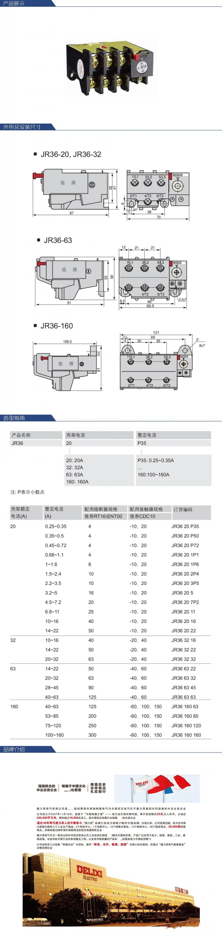 德力西电气 热过载继电器;JR36-63 28- 45A