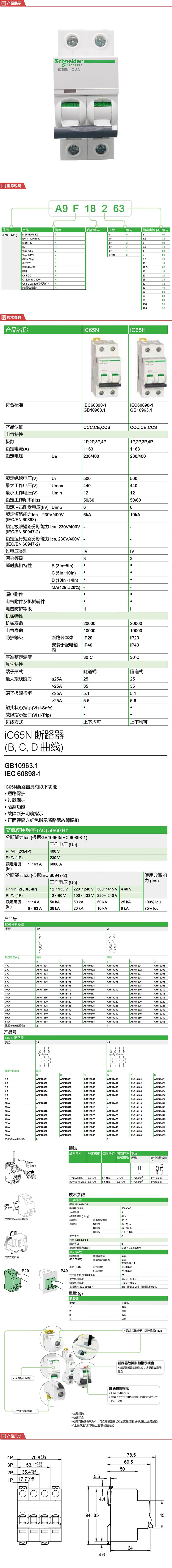 施耐德 断路器 iC65N 2P C3A