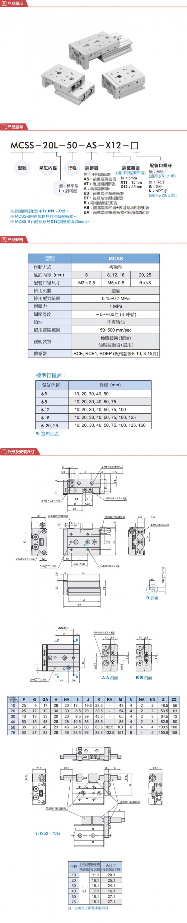 金器(Mindman) 滑台气压缸 MCSS-8-20