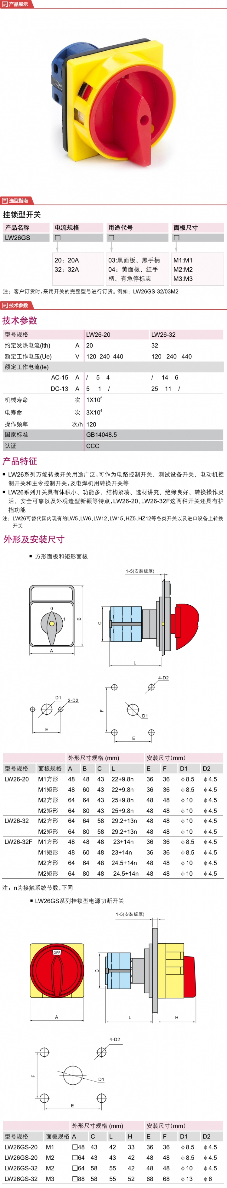 德力西电气 挂锁型电源切断开关;LW26GS-32/04M2