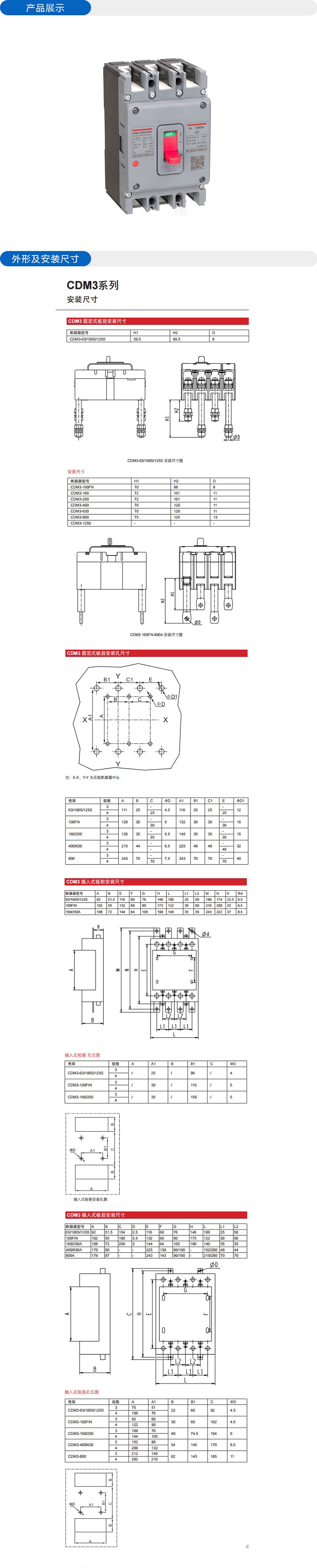 德力西 塑壳断路器 空气开关 CDM3-250S/3300 250A ;M3250S2503300