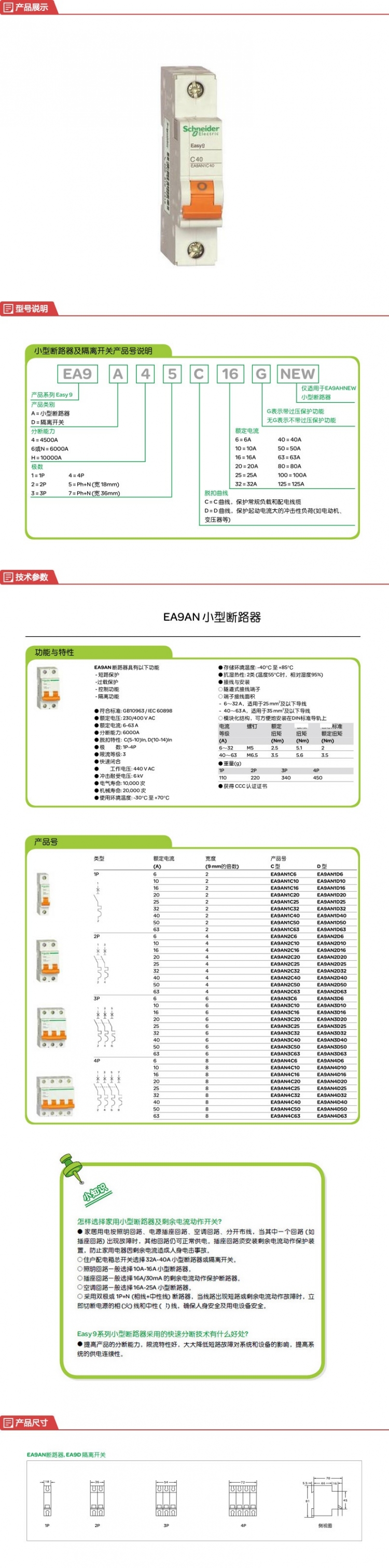 施耐德 空气开关 EA9系列小型断路器 1P C16A EA9AN1C16