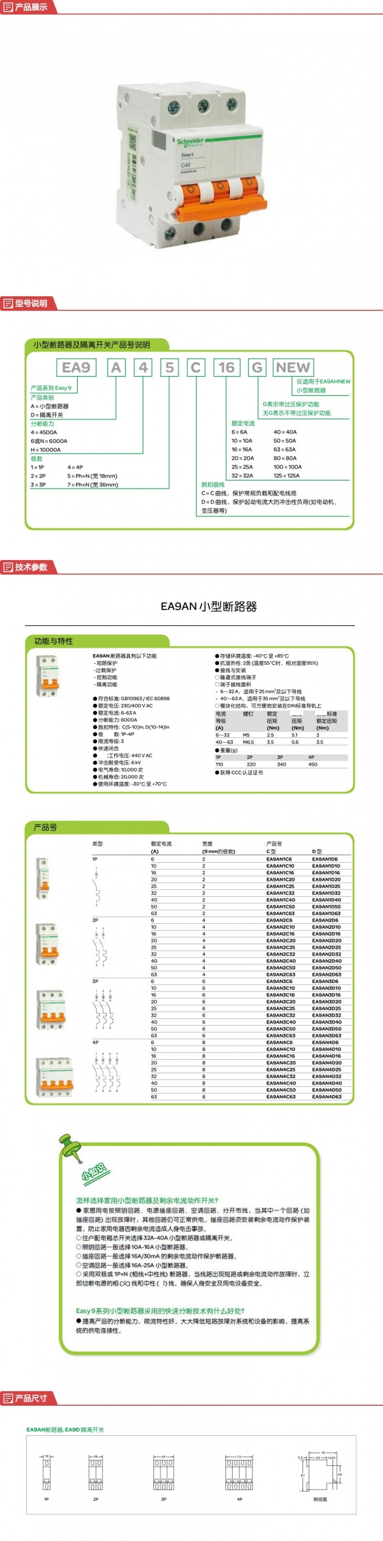 施耐德 空气开关 EA9系列小型断路器 3P D40A EA9AN3D40