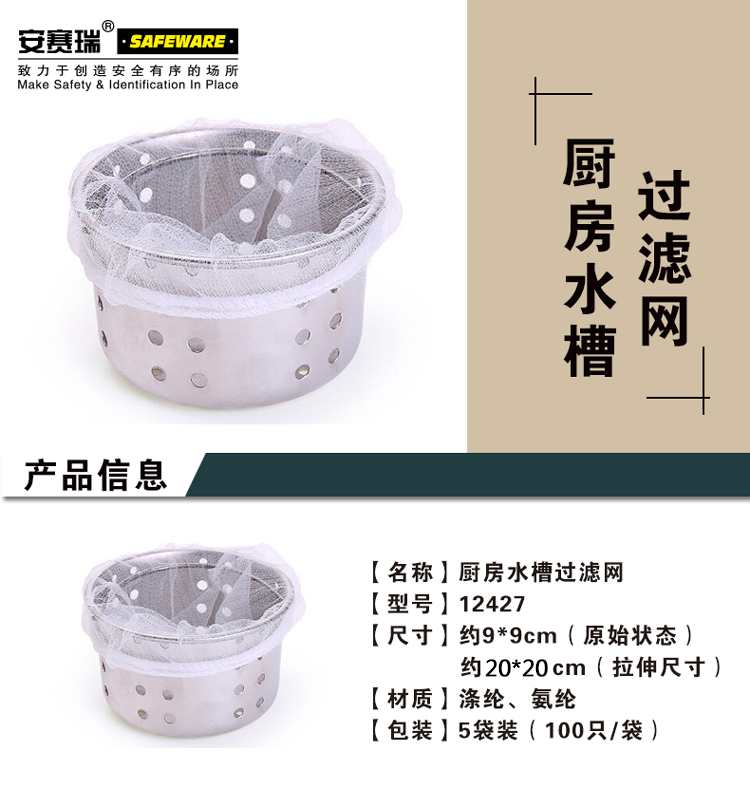 安赛瑞 厨房水槽过滤网 厨房水槽排水口过滤网 水槽残渣过滤网 水槽防堵过滤网(500只装)12427