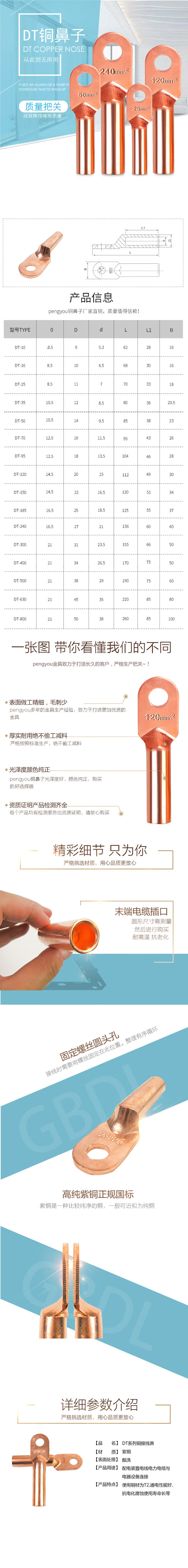 pengyou DT铜鼻子 酸洗堵油 铜接头 300平方紫铜接线端子 DT-300平方 单只