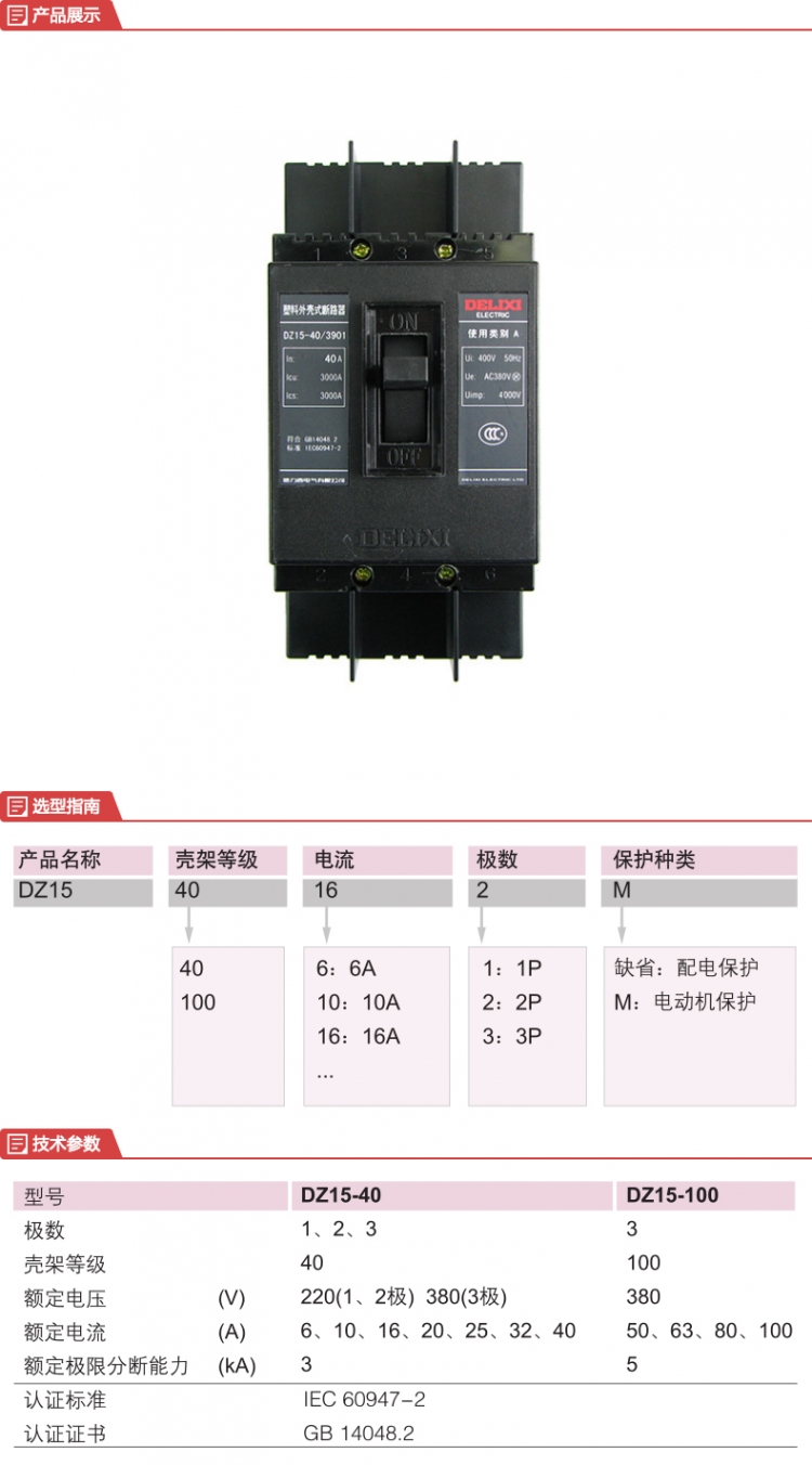 德力西 塑壳断路器 空气开关 DZ15-40/3901 40A ;DZ1540403