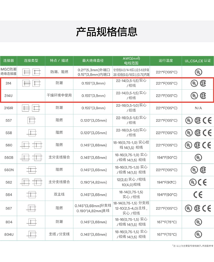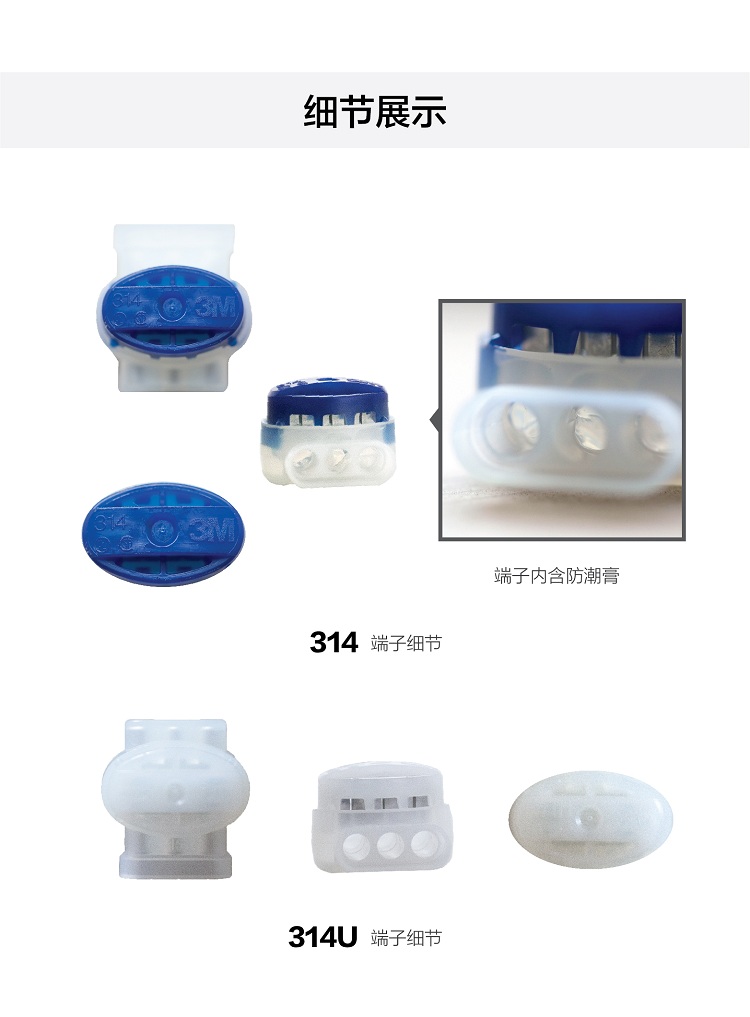 3M Scotchlok 314免剥线防潮接线端子 内有优质防潮膏 美国进口 阻燃耐温105℃ CSA UL认证 50个