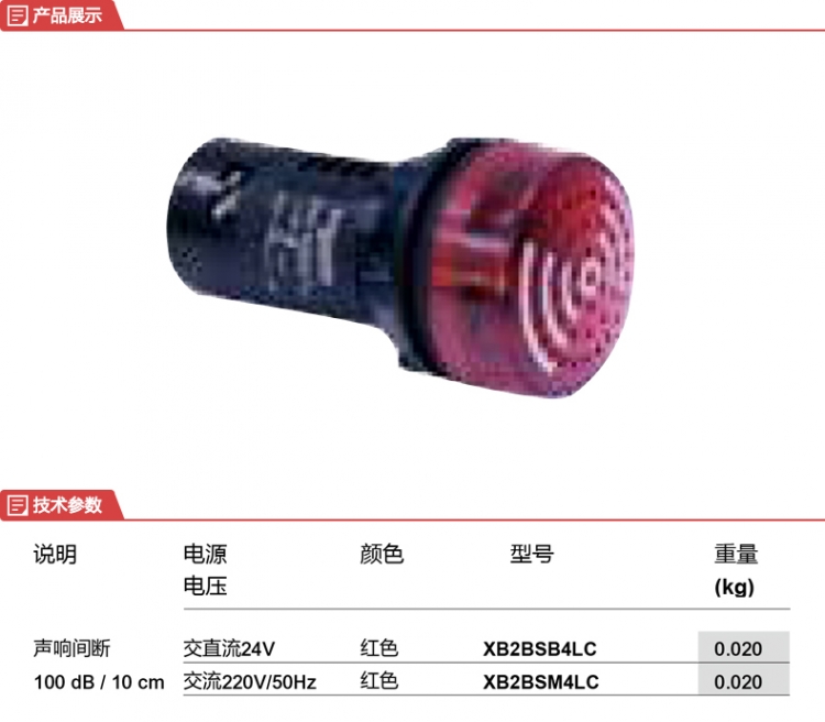 施耐德电气 带灯蜂鸣器 24V AC/DC XB2BSB4LC