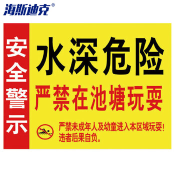 海斯迪克 HK-5013 警示牌 水池水库养殖告示牌溺水安全标识牌提示牌 水深危险07 30*40cm铝板