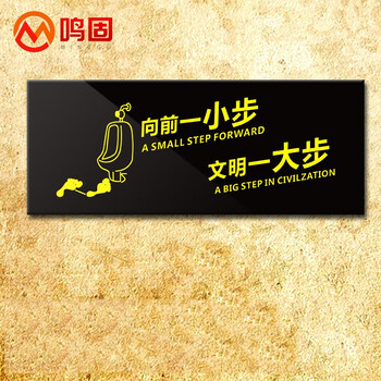 鸣固 亚克力标牌 男女无障碍洗手间 温馨提示厕所标识牌 12*30CM向前一小步(黑金)