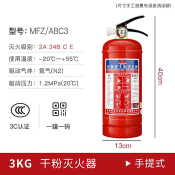 东消 MFZ/ABC3KG 灭火器 3公斤 手提式干粉灭火器 车载车用汽车家庭用商用店用公司消防器材