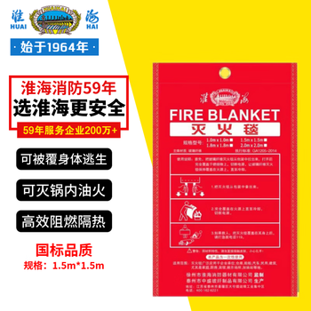 淮海 玻璃纤维1.5m×1.5m袋装 灭火毯 灭火器搭配用 厨房火灾逃生灭火毯应急