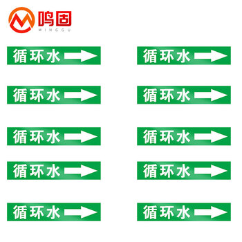 鸣固 管道标识贴 流向介质管路警示牌 消防工业箭头标签贴定制 4*20cm 循环水*10