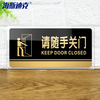 海斯迪克 gnjz-1355 亚克力标牌 指示办公室门牌可定制 电子监控区域标识牌警示牌墙贴纸 请随手关门20×10cm
