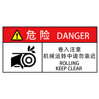 海斯迪克 工作场所安全标识牌贴纸 优质PVC警示牌1张 5*10CM 危险-卷入注意机械运转中请勿靠近 gnjz-1356