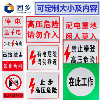 固乡(铝板反光标牌 配电重地闲人莫入 20x25cm 可定制)电力安全警示牌 配电箱标志牌