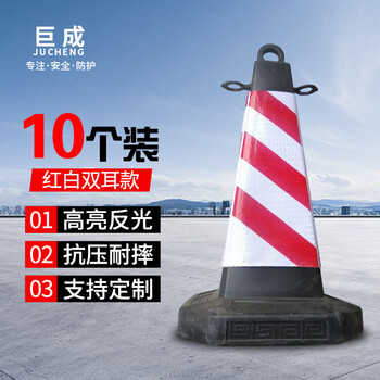 巨成 塑料路锥 反光路锥 交通方锥 带耳朵款 停车警示牌 雪糕桶警示柱桩 含沙款 10个装 企业定制