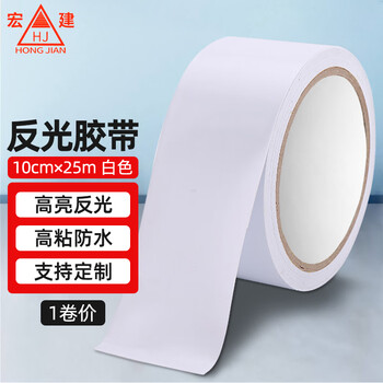 宏建 HJ 强力反光自粘警示胶带 PVC无痕防水防晒标识贴 10CM*25米 白色加厚 一卷价