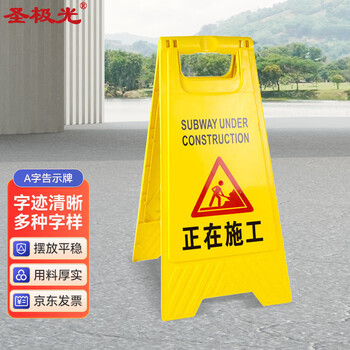 圣极光A字警示牌正在施工塑料标示牌施工标识牌700303告示牌