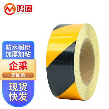 鸣固 黄黑反光条警示胶带 消防安全警戒线隔离带 电线杆墙贴标志反光膜 5*48m