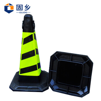固乡 (橡胶路锥双环黑黄) 方锥 交通反光锥 警示柱 隔离墩 路障 雪糕筒 禁止停车请勿泊车 高73cm大号