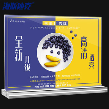 海斯迪克 HKW-344 亚克力展示牌 双面桌牌台卡广告牌 台签台卡架摆台定制 水晶抽拉横款(90×128mm)