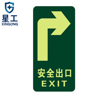 星工(XINGGONG)安全出口地贴夜光地贴荧光指示牌提示荧光通道牌 疏散方向 右转安全出口5个装