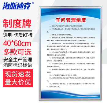 海斯迪克 车间工厂仓库消防标识标语 车间管理制度 40*60CM KT板 HKZ-54