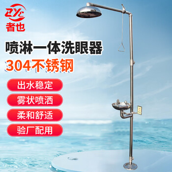 者也 紧急洗眼器实验室便携式移动洗眼器化工厂用304不锈钢挂壁式喷淋冲淋台式双口