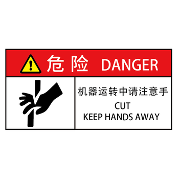 海斯迪克 工作场所安全标识牌贴纸 优质PVC警示牌1张 5*10CM 危险-机器运转中请注意手 gnjz-1356