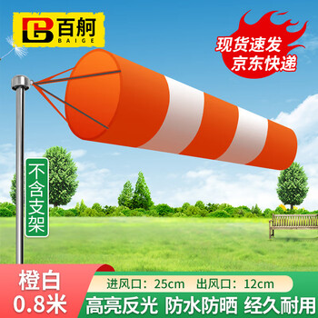 百舸 耐用型气象风向袋 布袋风向标油气化工企业风向测试(不带立柱)橙白反光款小号 0.8米