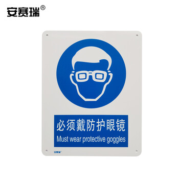 安赛瑞 国标安全标识 指令类警示标志牌 必须戴防护眼镜塑料板250*315mm 31002