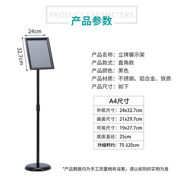 者也 立牌指示牌 不锈钢广告牌 可升降伸缩展示牌酒店指示牌立式广告牌方向指引牌告示牌 A4黑色【直角】