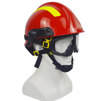 者也 17款消防头盔 抢险救援头盔 消防员安全帽红色防护头盔 配护目镜带灯架