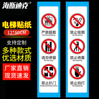 海斯迪克 电梯警示牌标识12*50cm 严禁超载吸烟靠门乱按钮 款式3(2个起订)gnjz-1334