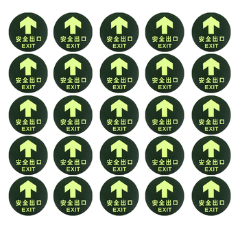 坚冠 安全出口圆形 25片装 夜光耐磨地贴 消防安全疏散标识指示牌 逃离方向指示