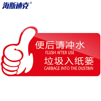 海斯迪克 HKW-347 亚克力标识牌 卫生间指示牌提示牌警示牌导向牌牌子 便后请冲水垃圾入纸篓(红色)