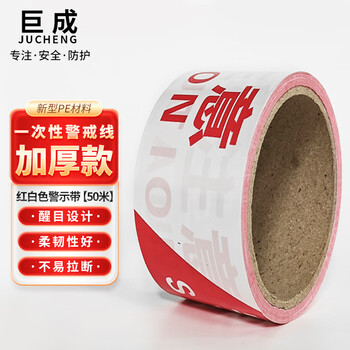巨成 一次性交通警示线 注意安全交通警戒隔离带 道路施工警戒线 5cm*48m 红白相间 加厚款