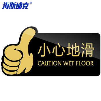 海斯迪克 亚克力标识牌 卫生间指示牌 小心地滑(黑色)(3个起订)HKW-347