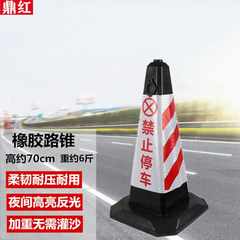 鼎红 橡胶路锥加重反光路障锥雪糕筒道路安全警示锥红白禁止停车70cm6斤方锥
