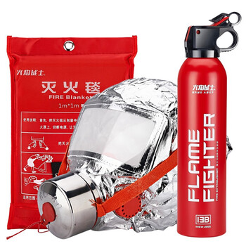 火焰战士逃生面具灭火器灭火毯应急包消防家用火灾逃生三件套逃生面具+灭火毯1米+555水基)HFM-3