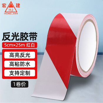 宏建 HJ 强力反光自粘警示胶带 PVC无痕防水防晒标识贴 5CM×25米 红白斜纹加厚 一卷价