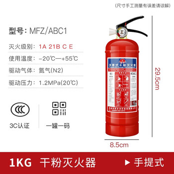东消 MFZ/ABC1 灭火器1KG 车载手提式干粉灭火器1公斤 灭火器车用车载灭器私家汽车轿车小车专用