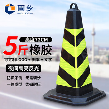 固乡 反光(路锥黑黄一体大号)塑料隔离方锥 请勿泊车禁止停车牌雪糕筒路障警示柱橡胶交通设施警示锥