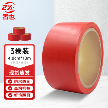 者也 黑黄斑马线警戒地标贴胶带彩色5S定位划线地面通道警示贴胶带4.8CM*18M红色 3卷装