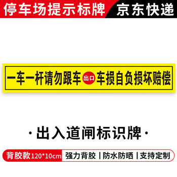冰禹 一车一杆出入标识牌 道闸提示牌警示牌反光贴纸 120*10cm 黄(出口)请勿跟车/车损自负 BYrl-243