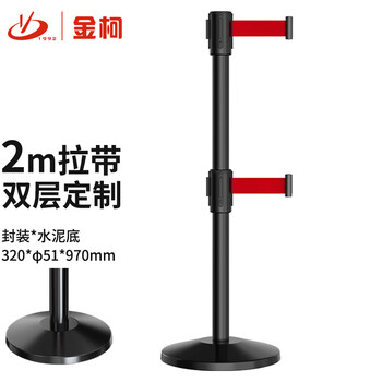金柯 一米线栏杆 320*984mm 双层2米伸缩隔离带 一米栏警戒带立杆 酒店商场展厅排队护栏 烤漆黑