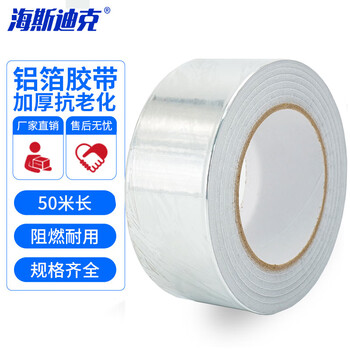 海斯迪克 HK-621 铝箔胶带 耐高温导电屏蔽 风管阻燃抗老化加厚铝箔胶带 50mm*50m