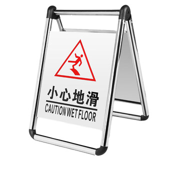 竹特 A字折叠警示牌 不锈钢折叠指示牌 清洁施工提示暂停服务提示金属A字牌 (小心地滑)企业定制