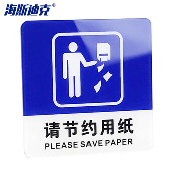 海斯迪克 gnjz-4001 亚克力标识牌 温馨提示请勿吸烟警示牌10*10cm 请节约用纸(蓝色)